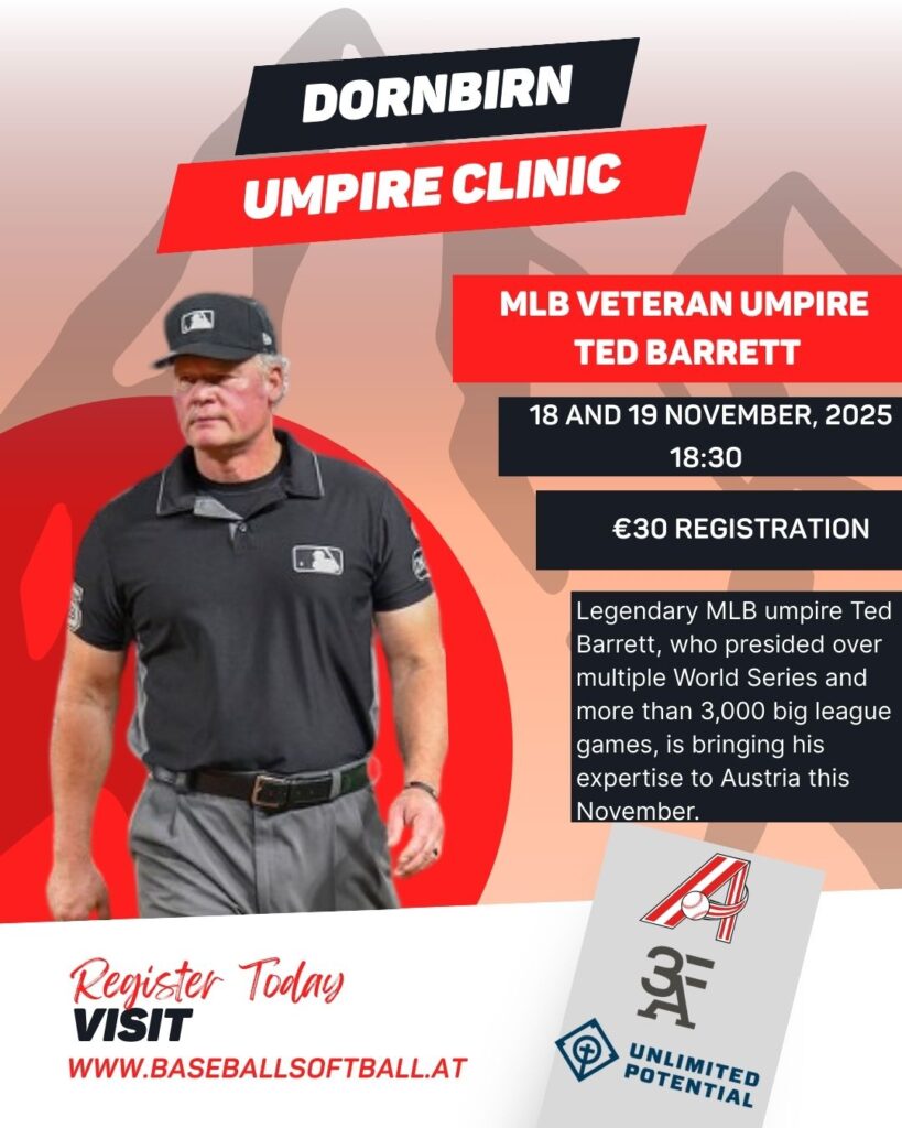 - Austrian Baseball and Softball Federation Convention (BSFZ Maria Alm/Hintermoos, November 14–16): Barrett will be a featured speaker, offering insights into professional umpiring at the highest level.